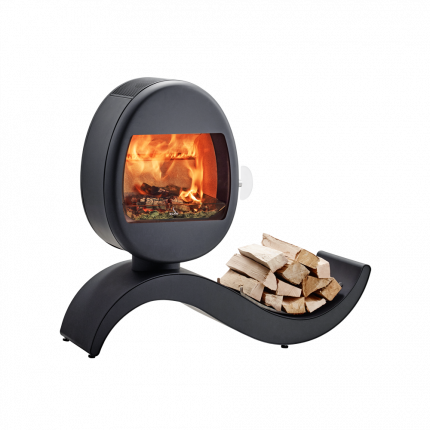 La estufa Scan 66-5 combina perfectamente el diseño de la gama Scan 66 con una nueva base funcional y estética. Su forma curva que interpreta la S de la marca permite integrar un espacio de almacenamiento para leña. Este espacio queda delimitado y protegido con unas tiras en acero que mantendrán la superficie de la base libre de rayas.