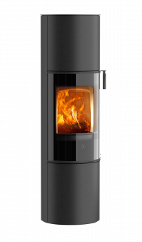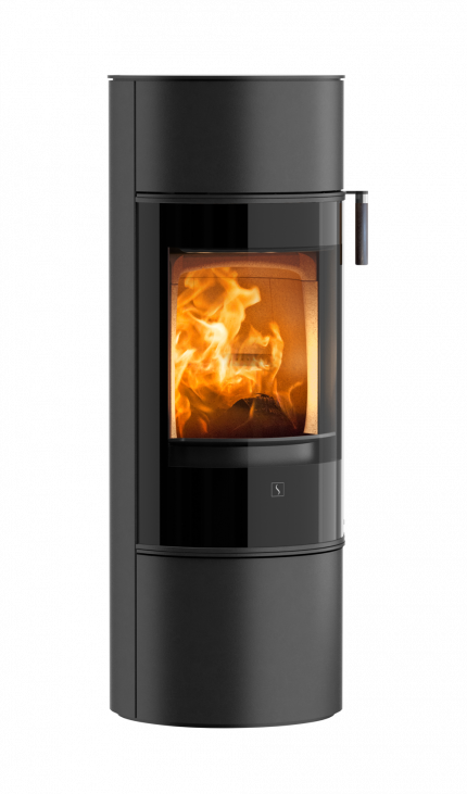 Con su elegante puerta completamente en cristal negro, la estufa SCAN 84-1 ofrece una hermosa visión de las llamas. Su puerta, con maneta elevada, está equipada con un sistema de cierre automático que garantiza un cierre silencioso y suave tras la operación de carga de leños. Elija entre 4 tonos diferentes de roble para el tirador superior de la puerta y vista la parte superior de su estufa añadiendo una tapa de cristal negro para darle más brillo, o de piedra esteatita para darle más elegancia. Puede optar por equiparlo con una base giratoria opcional para disfrutar de la vista del fuego desde cualquier rincón