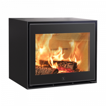 Scan 1003 es un cassette plano, disponible con cristal blanco y marco de cromo, o con cristal negro y marco de acero negro. Puede tener troncos de hasta 50 cm.