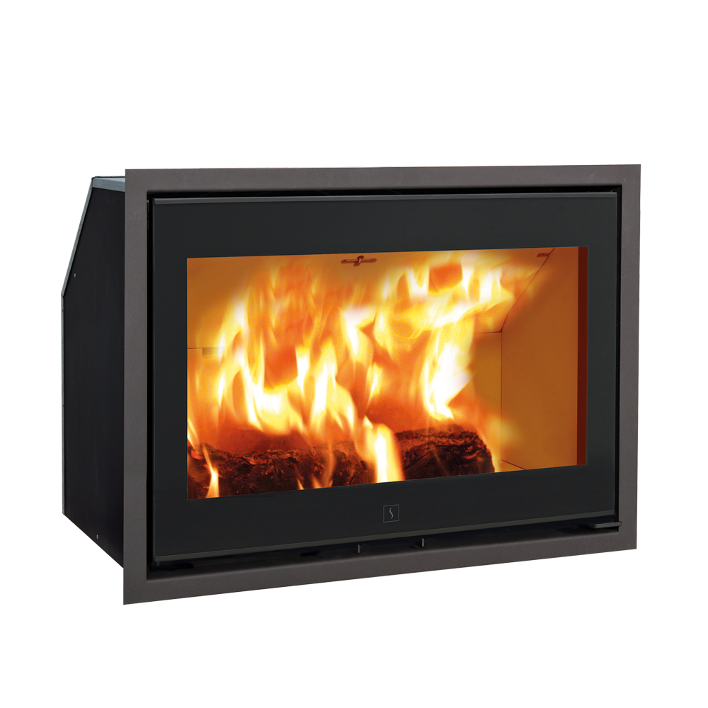 Scan 1004 es un cassette plano, disponible con cristal blanco y marco de cromo, o con cristal negro y marco de acero negro. Puede tener troncos de hasta 65 cm.