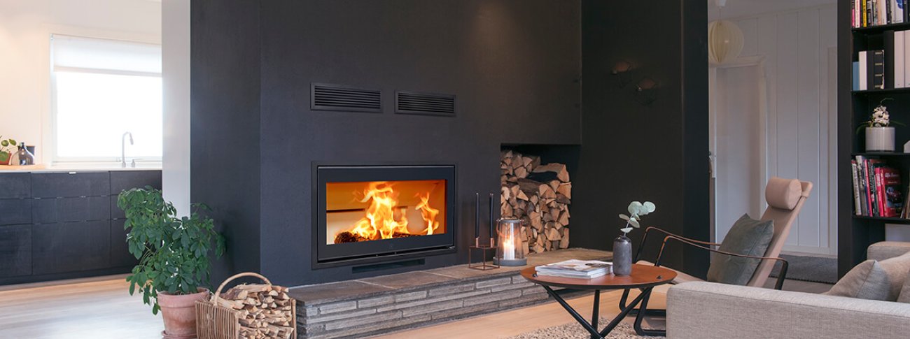 Este casete de leña de formato panorámico y 100 cm de anchura ofrece una amplísima vision de fuego. Su diseño elegante, con marco de acero negro, cristal serigrafiado negro y luminosa cámara de combustion, lo hace apto para todo tipo de estilos de decoración interior. Este casete de leña puede albergar troncos de hasta 80 cm.