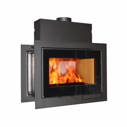 Este hogar de doble cara permite una gran visión de fuego desde dos habitaciones, aunque también es ideal como separador de ambientes en grandes estancias. La regulación de la combustión, y la carga de leña se pueden llevar a cabo desde ambas caras del hogar. El hogar Scan DSA 12 es un producto innovador, que aúna calidad y un bello espectáculo de las llamas.